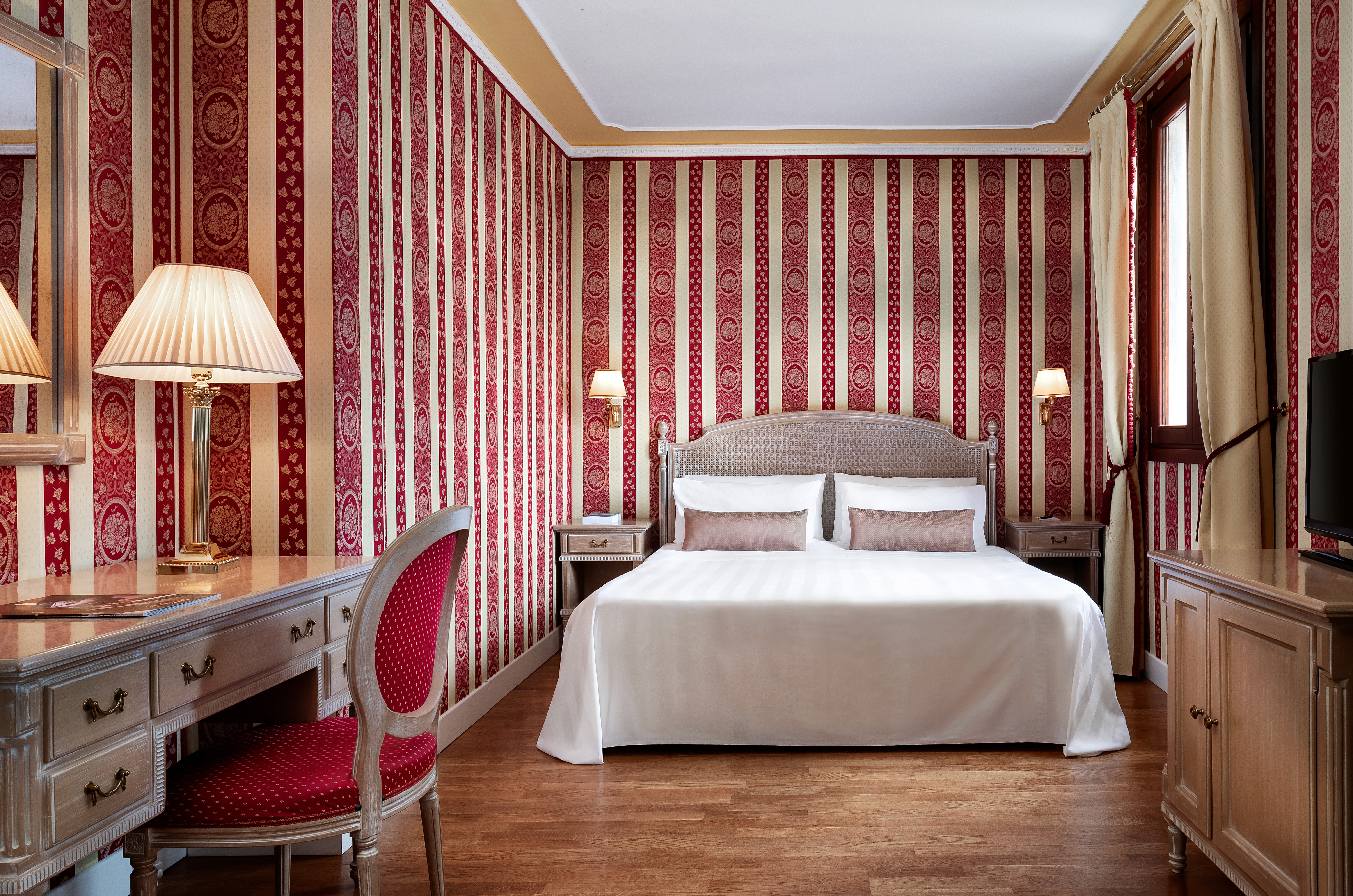 This charming boutique hotel was formerly a patrician palace and reflects the typical style of décor for which Venice is famous. It is a little gem located between the Rialto Bridge and St. Mark’s Square. The main entrance is on a private pier which is directly on the Grand Canal. The rooms and suites are elegantly furnished in classical Venetian style and many of them have windows overlooking the Grand Canal which means delighting in most breathtaking views. All accommodations have elegant Carrara marble bathrooms and Jacuzzi tubs. The breakfast room and the bar, with wonderful views over Venice’s legendary Grand Canal, complete the services of the Hotel.