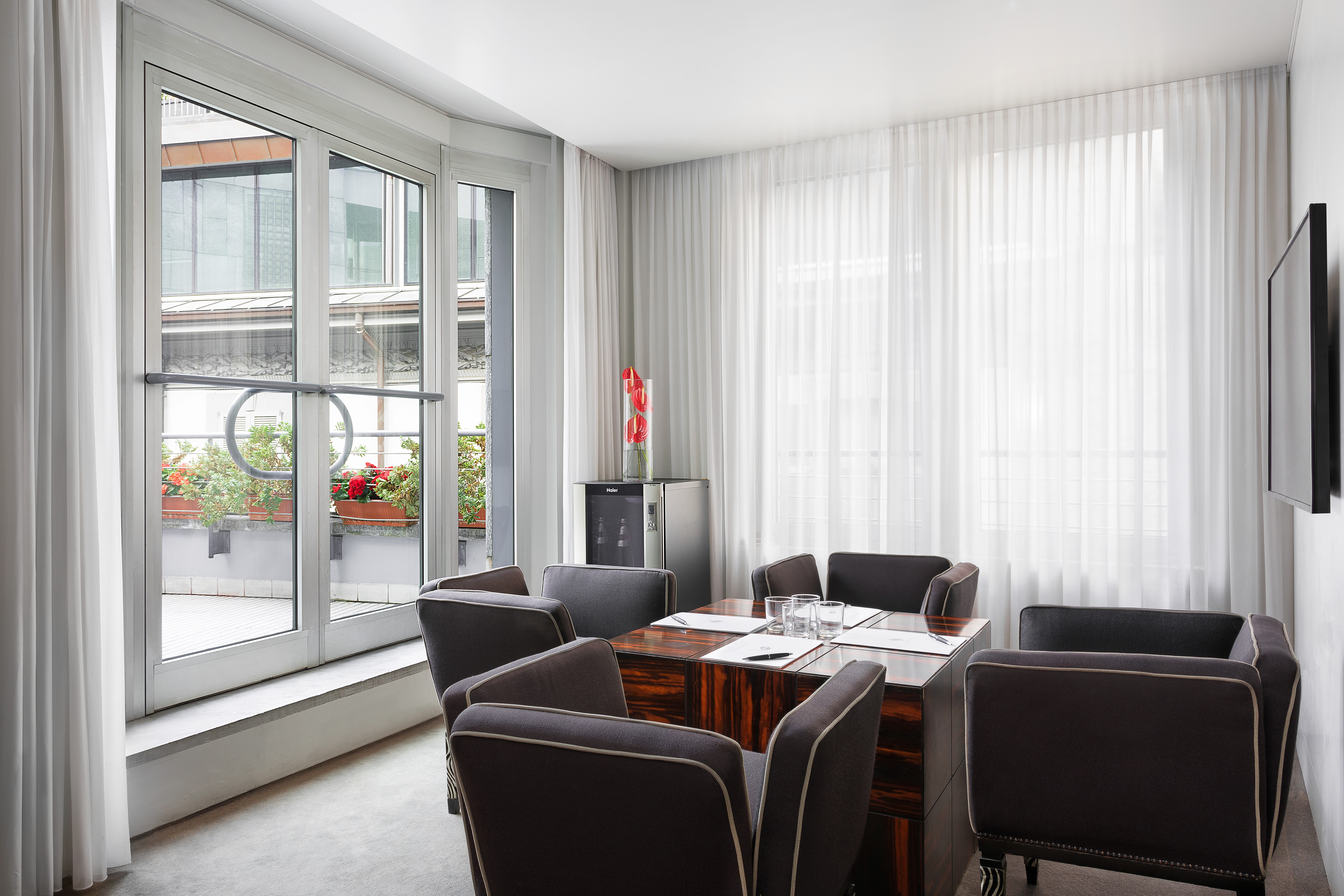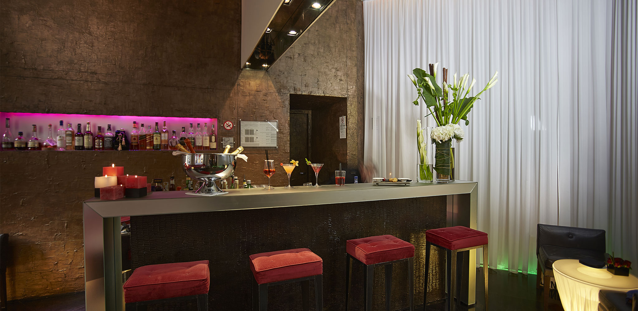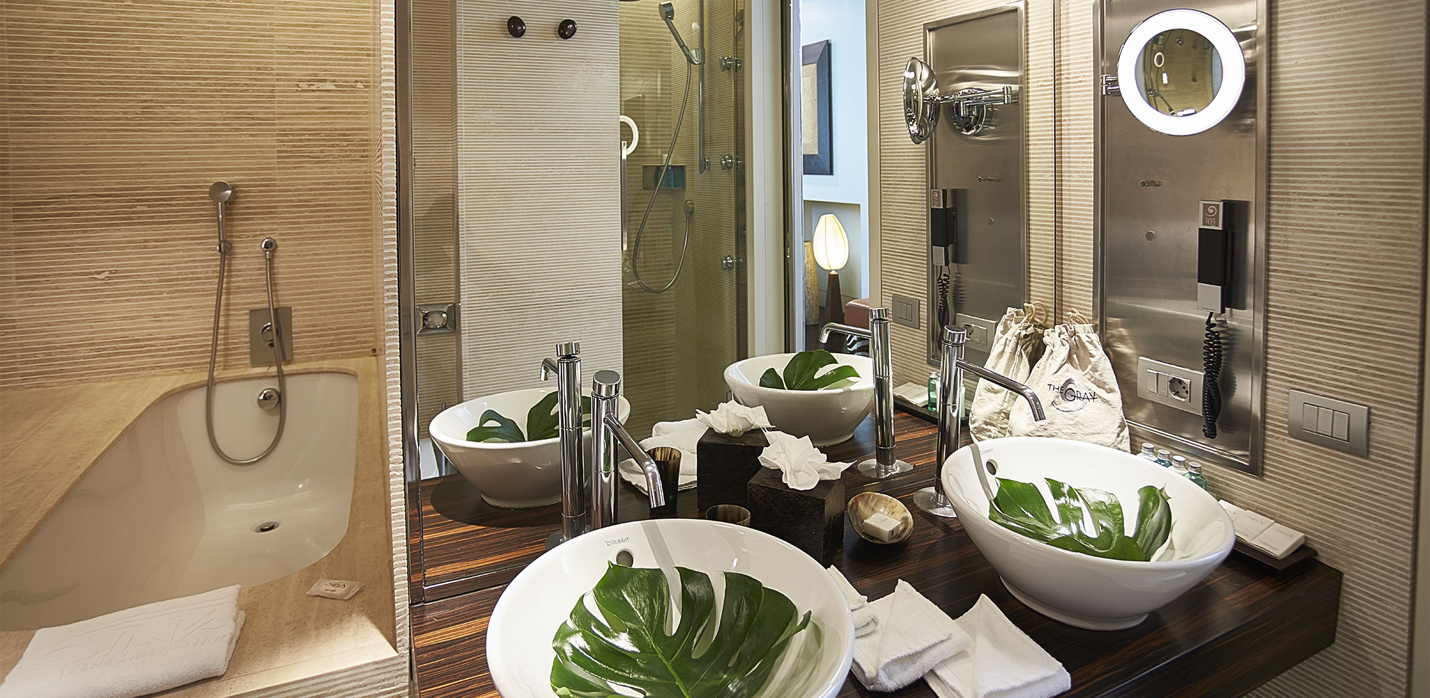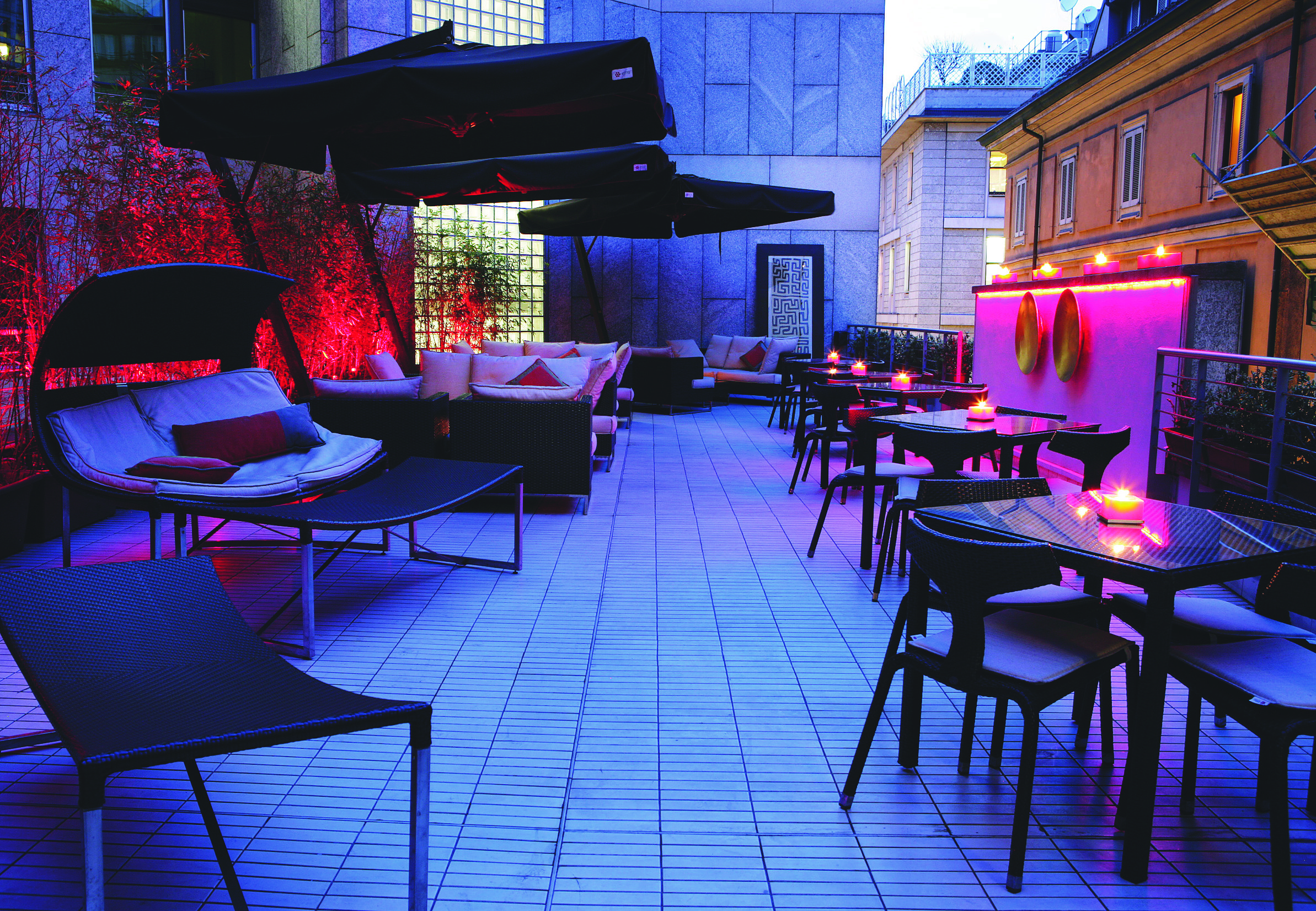 The only place in the world where grey is a colour and hospitality be- comes design. The rooms are all different and have been designed as urban refuges for the body and the mind where hi-tech and comfort blend with the impalpable ambiance. There are ethnic touches every- where: hot-pink shantung couches, beds hanging from the ceiling like swings, zebra and ostrich skins and precious woods. The exclusive GBar is the ideal place to take a break from shopping, Aria is an elegant and enchanting open-air terrace while in the Le Noir Restaurant pride of place goes to the flavours and fragrances which our Chefs transform into unique visual and gustative art.
