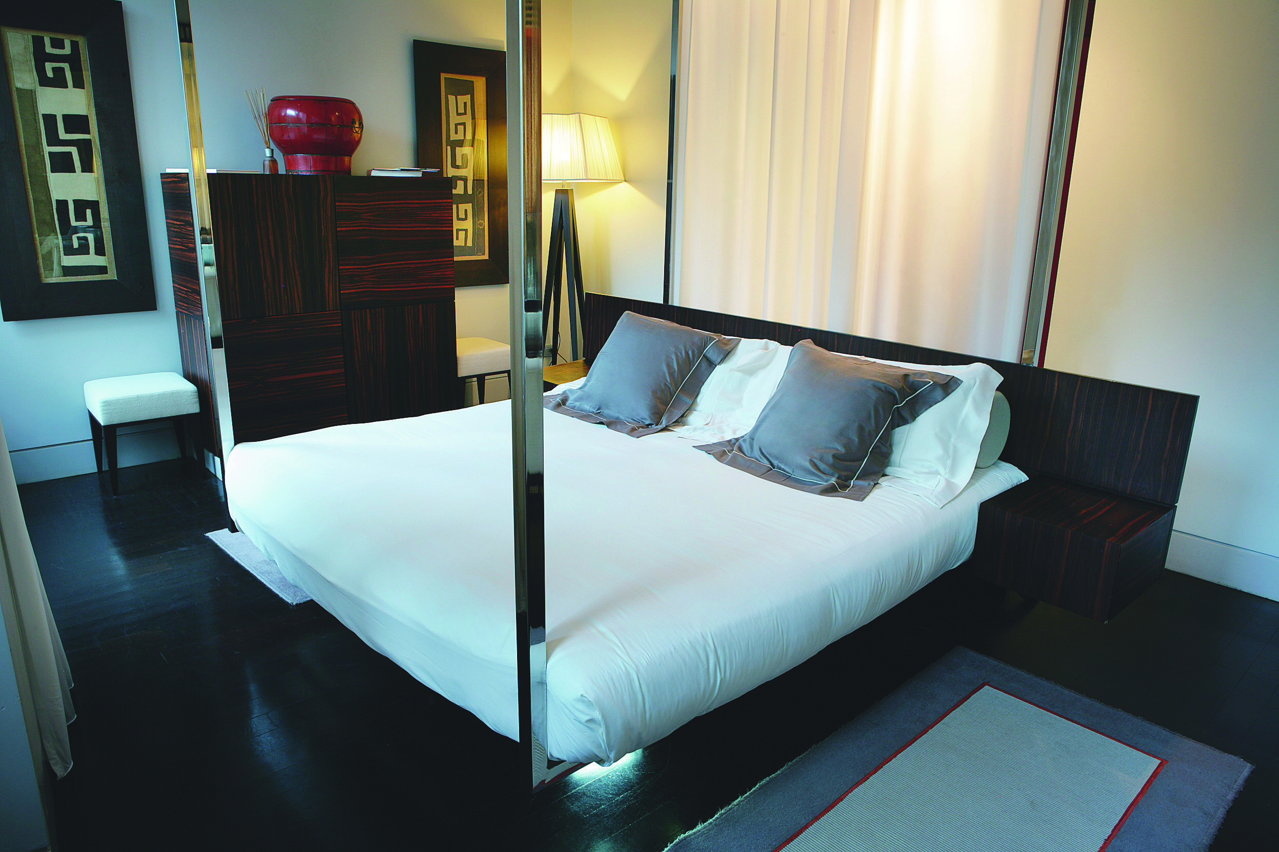 The 21 rooms and suites in our boutique hotel are modern with ethnic touches, floating beds, and in some cases, a small private gym or Turkish bath.