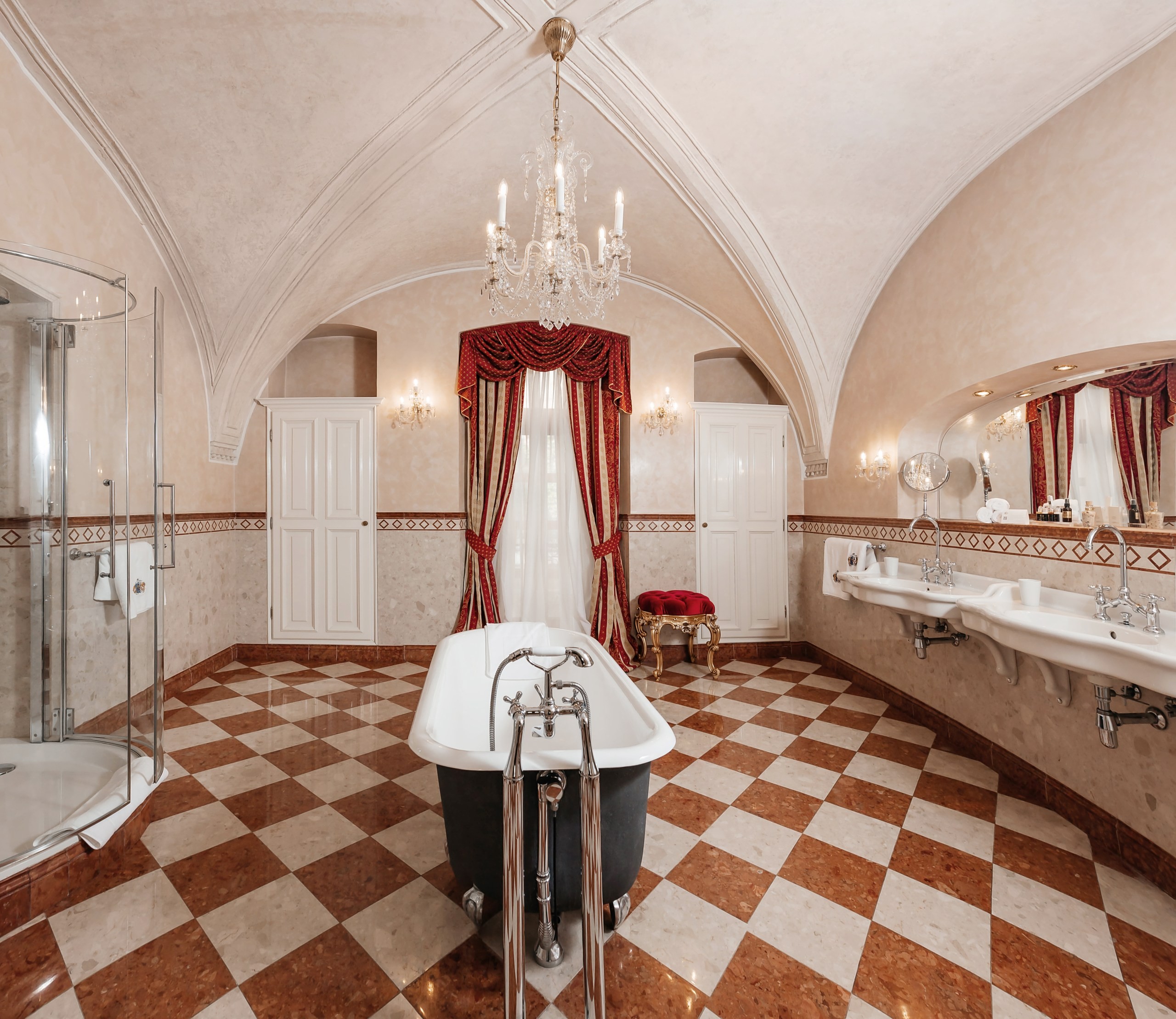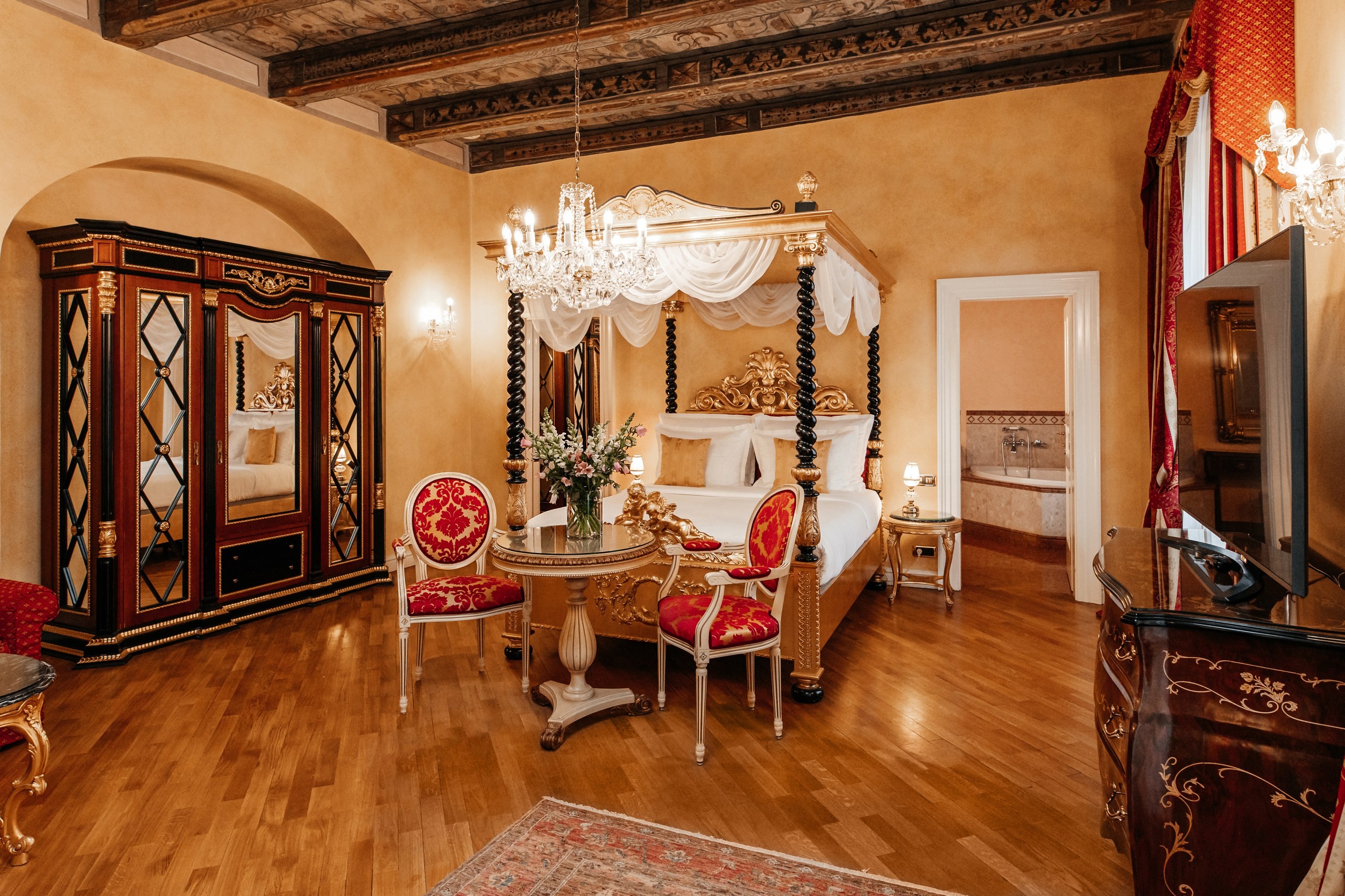 With 27 elegant rooms and 19 suites, the accommodations reflect the historical baroque style of the building.