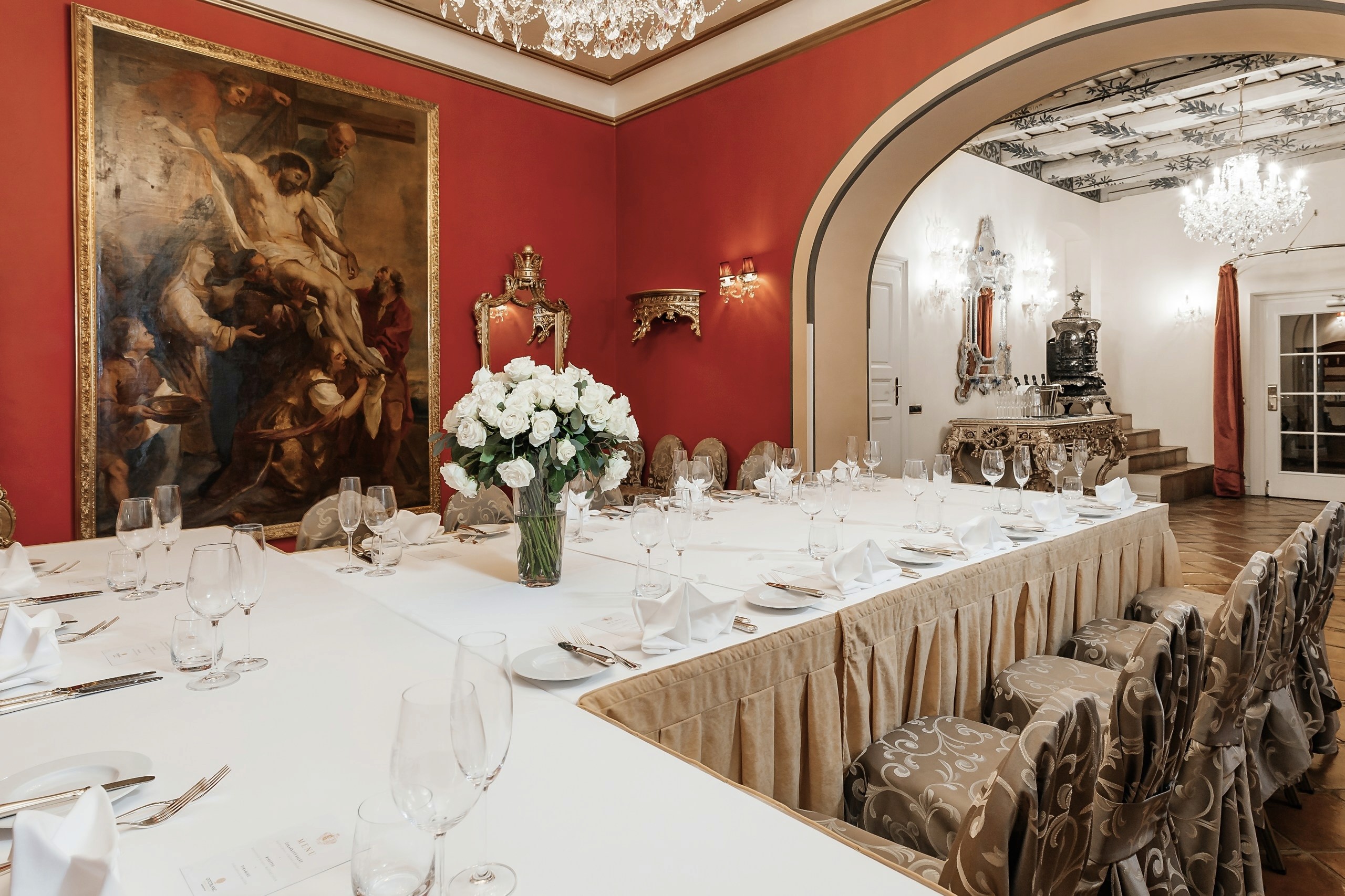 The hotel restaurant offers a menu inspired by Czech tradition, infused with the lightness of Italian cuisine and the elegance of French dishes.