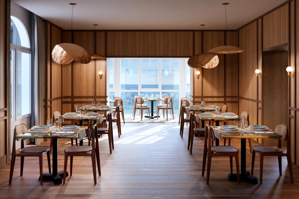 Resembling an ocean liner from the 1930s, the Bassans restaurant and bar reinvent the soul of an iconic institution, the Manoir du Sphinx. Each table and the bar offer a breathtaking panorama of the changing waters of the Pink Granite Coast. In a warm and intimate wooded atmosphere, the table tells the story of Brittany's terroir and the surf around iodised flavours and seafood.