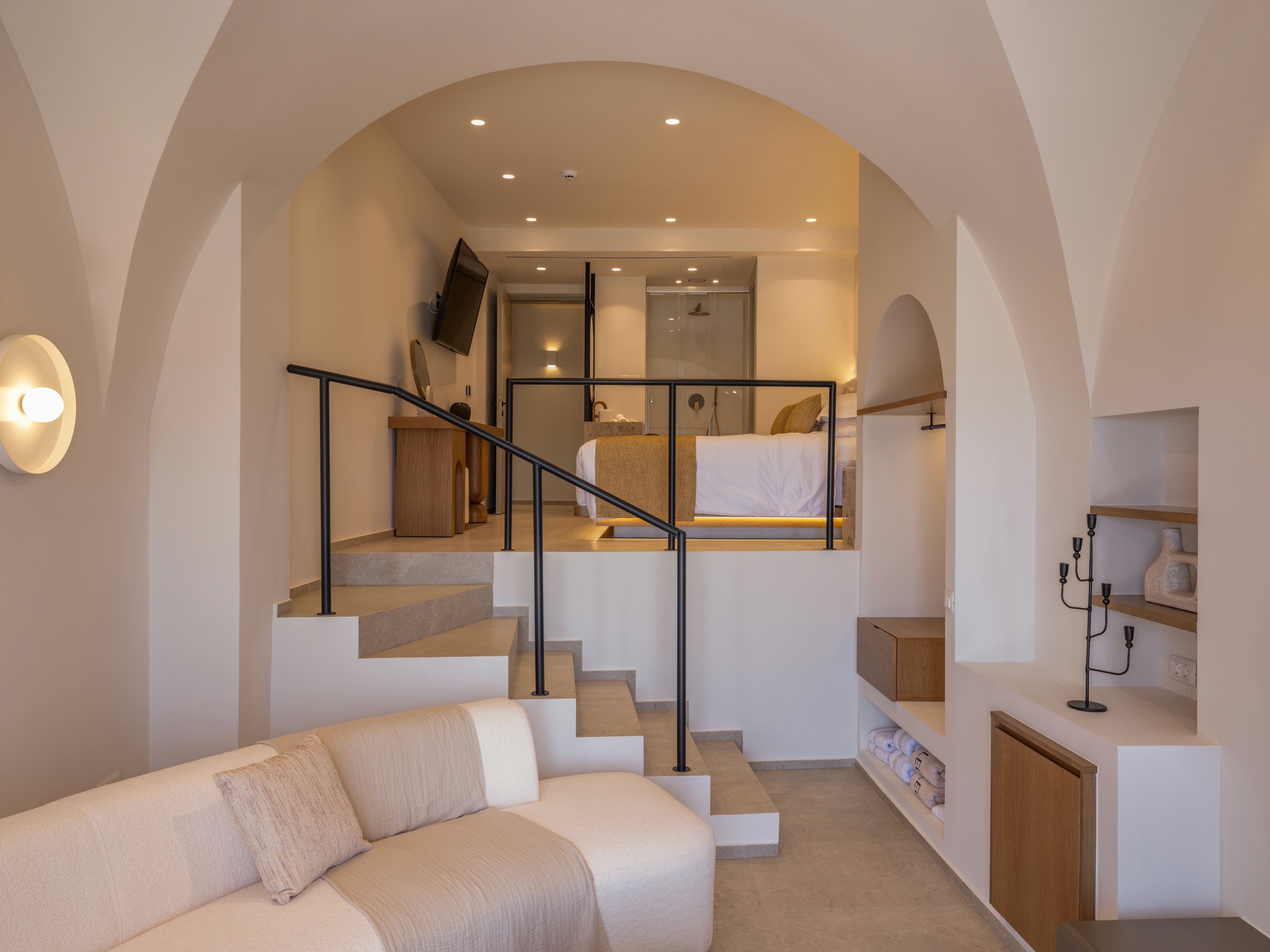 Santo Mine Oia Suites, is a laid-back luxury all-suite resort carved into Oia’s cliffs above Ammoudi Bay. Its 37 suites, each with a private pool and/or jacuzzi, offer uninterrupted Aegean Sea views. A haven of privacy and seclusion shaped by the “Embracing Emotion” concept, it includes standout features such as a wine cellar, a sea-to-table restaurant, an outdoor gym and an all-day bar. An exclusive 360° viewpoint is available for weddings and special moments, with panoramic views across the Caldera and the Aegean.