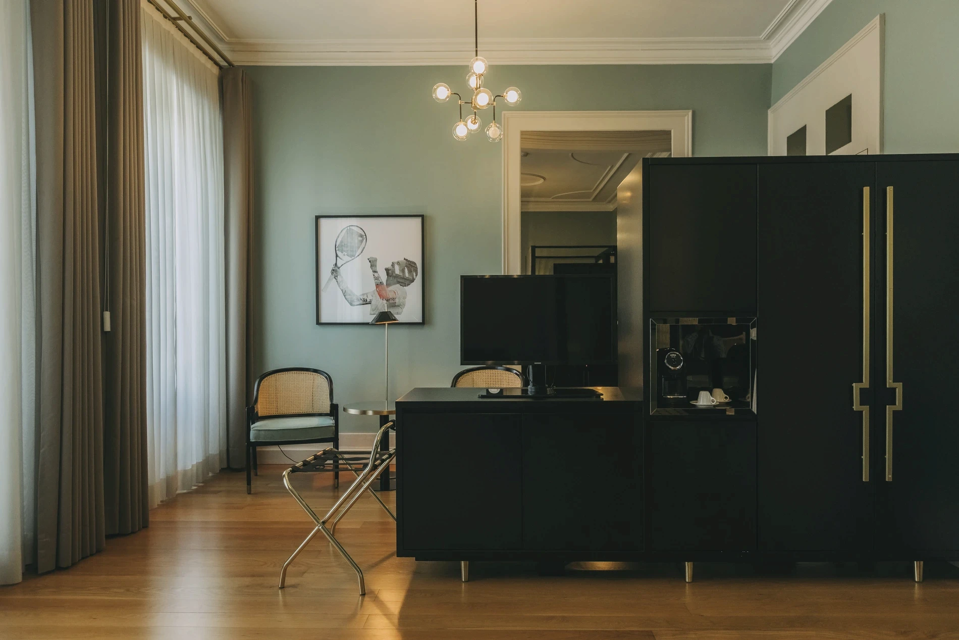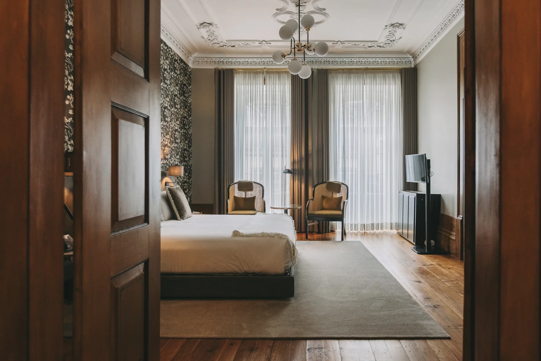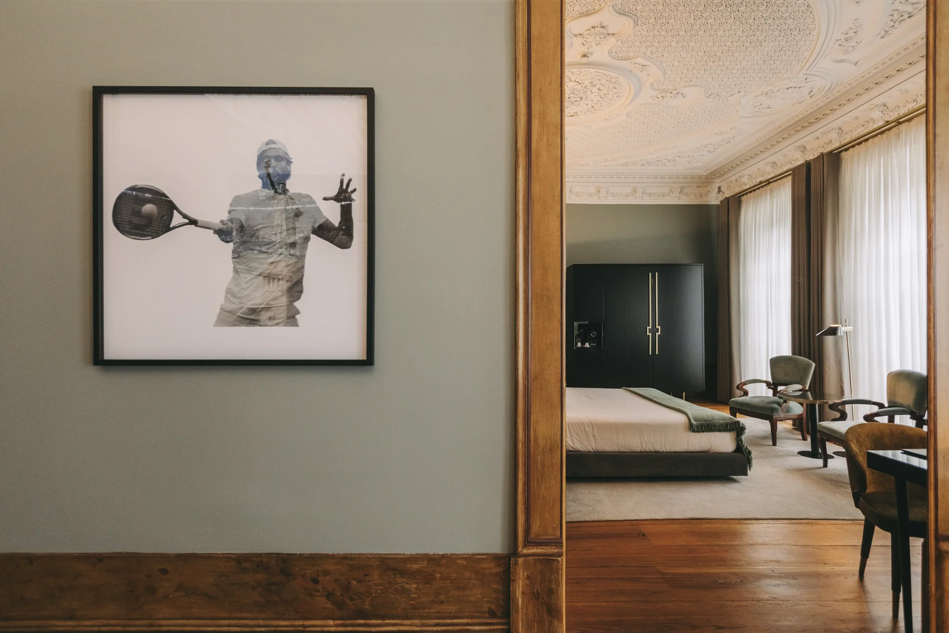 With 18 exclusive rooms inspired by the cities where João Sousa made his mark, our palace offers a space of grandeur and grace. The original stucco ceilings and generous 30m² spaces reflect the essence of tennis, history, and Portuguese charm. This is where passion lives, where each moment feels timeless.