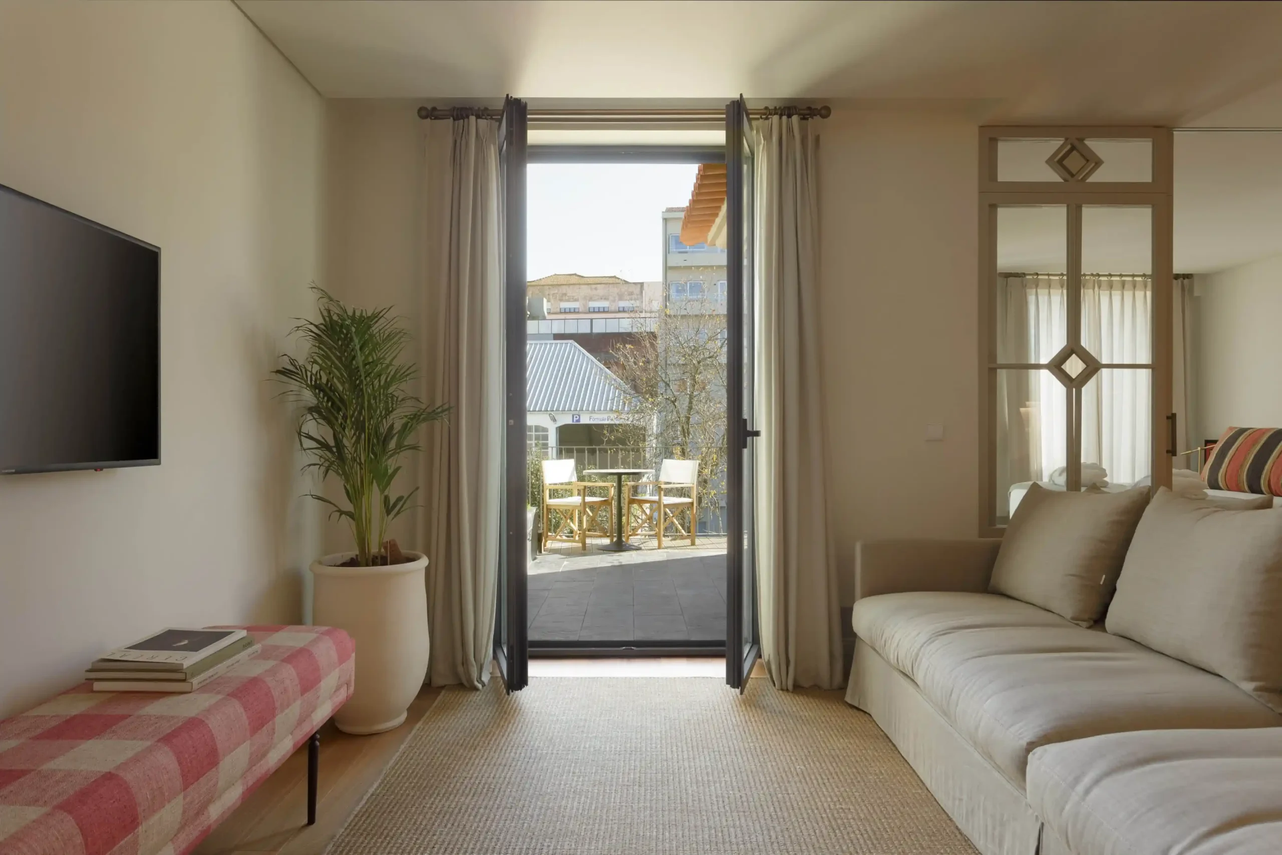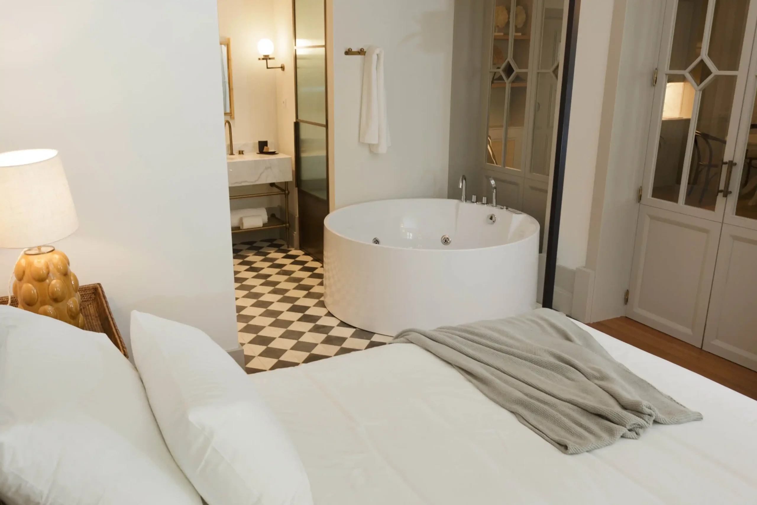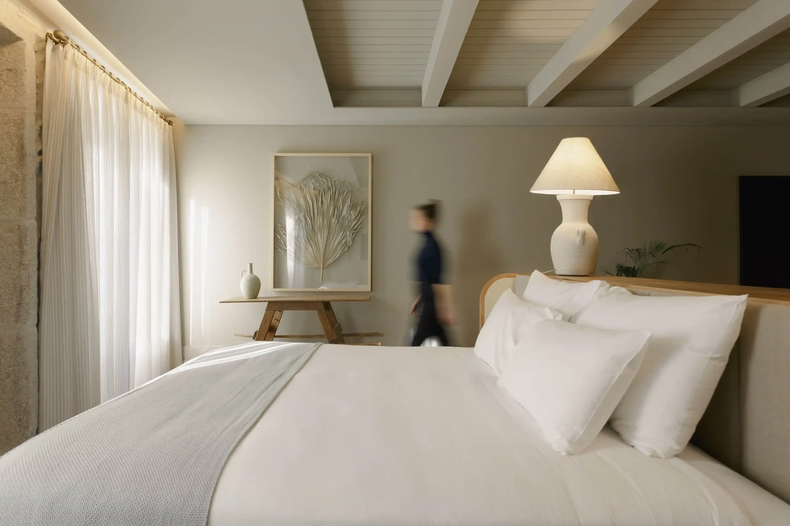 Find yourself immersed in the artistry of refinement and natural elegance. At Torel Saboaria, each of our 28 spacious accommodations invites you to discover the perfect balance of design, comfort, textures, and colors. Light pours in through expansive windows, framing the beauty of the surrounding garden, while the interiors reflect a serene combination of simple luxury and earthy materials—rope, basketwork, and terracotta.