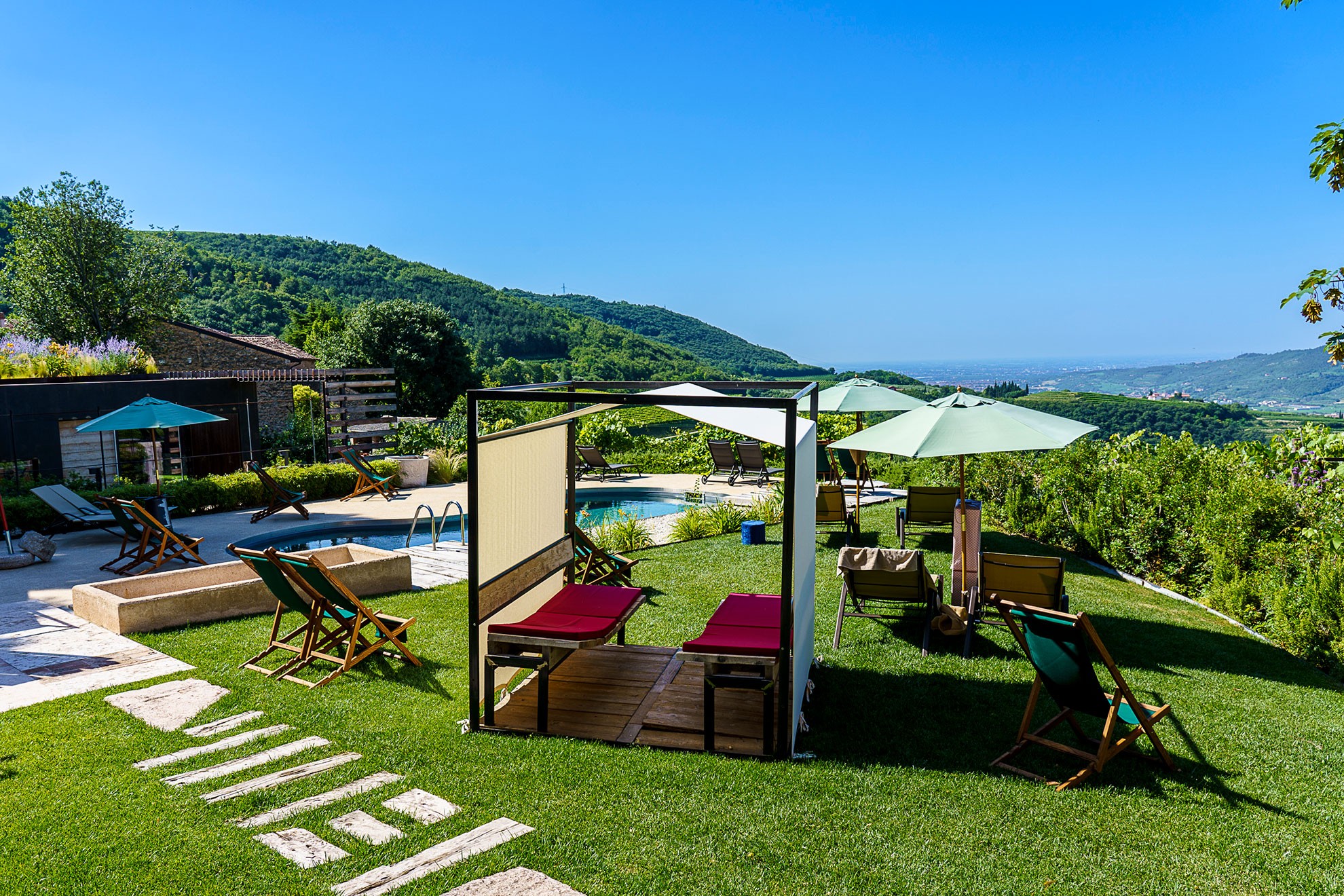 A meeting between relaxation and excellence, with spectacular views of the Verona countryside and in the heart of Valpolicella, the Villa offers an elegant combination of modern comfort and historic charm. Lush vineyards and centuries-old olive trees will give you the opportunity to immerse yourself in natural beauty.