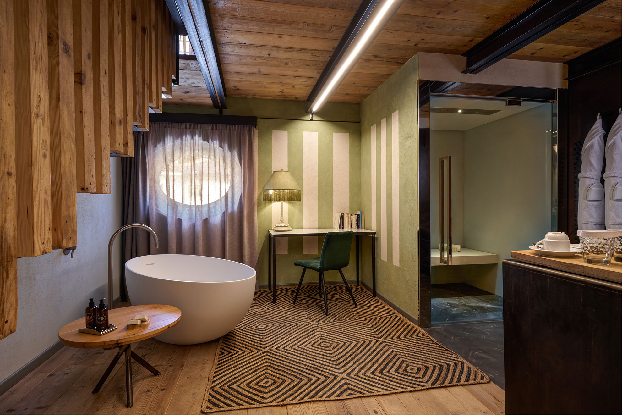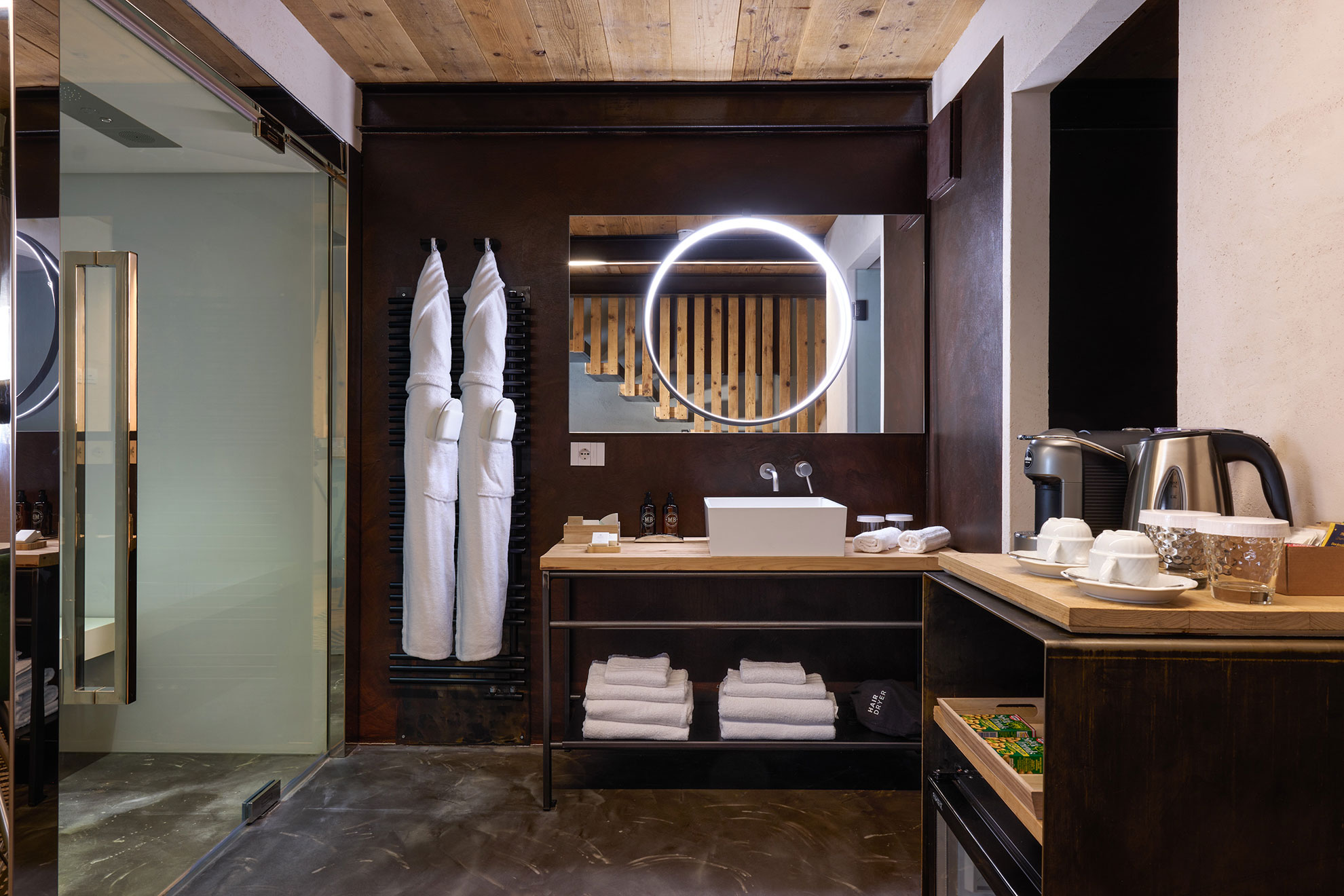 Relaxation area in the Spa Suite. A pampering for the body and spirit is ideal after a long journey into the world of Venetian wonders. Elegance and well-being will accompany you in every detail of the Spa Suites. Exclusive relaxation areas with tub and Turkish bath to regenerate mind and body in an atmosphere of tranquility and absolute comfort.