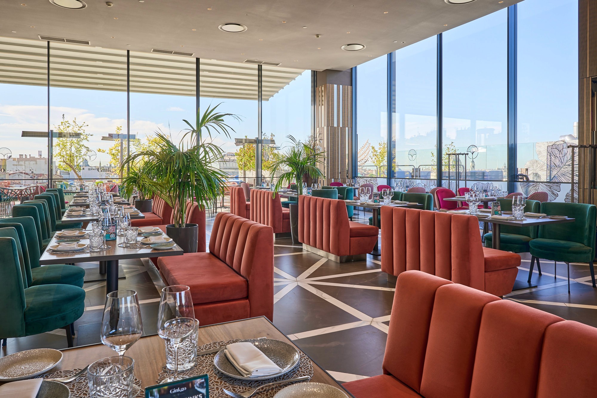 • The hotel’s 12th floor is home to one of Madrid’s most exclusive and sophisticated terraces: Ginkgo Restaurant & Sky Bar, renowned for its unparalleled 360-degree views, exceptional cuisine, and signature cocktails crafted by expert bartenders